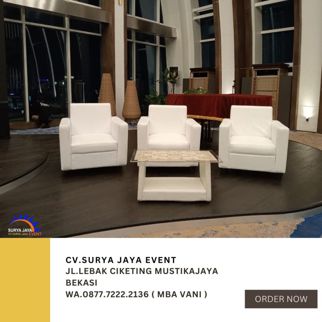 CV SURYA JAYA EVENT Rental Sofa Putih Type Single Daerah Jakarta Respon Cepat layanan 24 jam siap kirim ke lokasi. Jadi jika anda ingin merental sofa type single buat acara ayo rental di CV SURYA JAYA EVENT saja yang terjamin kualitasnya :