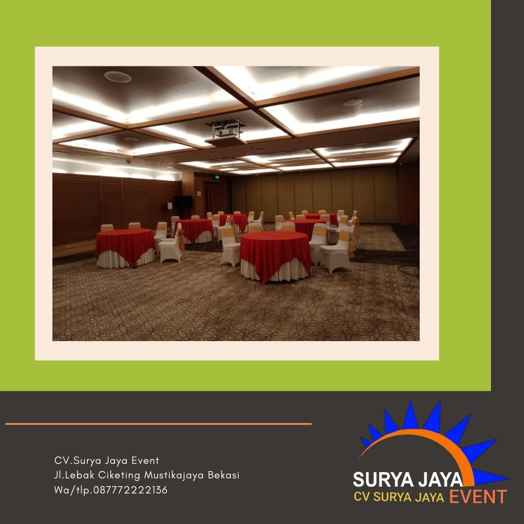 CV.Surya Jaya Event Gudang Sewa Alat Pesta Meja Kursi Terdekat Siap Antar ke lokasi.Untuk biaya pengiriman free tentunya dengan syarat dan ketentuan yang berlaku.Alat pesta yang biasa disewakan yaitu meja bundar dan kursi futura.Meja bundar nya dilengkapi cover meja dan kursi futura nya dengan sarung kursi tentunya cover meja dan sarung kursi mempunyai kualitas standar hotel sehingga meja bundar dan kursi futuranya terlihat rapih,cantik,menarik,mewah dan berkelas.Untuk cover meja dan sarung kursi selalu bersih terawat,tidak lecek,tidak lusuh,tidak robek,tidak bolong.Untuk warna cover meja dan sarung kursi tersedia banyak pilihan jadi customer dan pelanggan bisa pilih sendiri warnanya sesuai permintaan.Untuk ukuran meja bundar ada tiga ukuran mulai dari meja bundar ukuran d:120 cm,meja bundar ukuran d:160 cm,meja bundar ukuran d:180 cm.Meja bundar dan kursi futura selain untuk acara pesta juga bisa untuk acara apa saja.Sudah banyak lho yang menggunakan jasa kami dari berbagai kota.