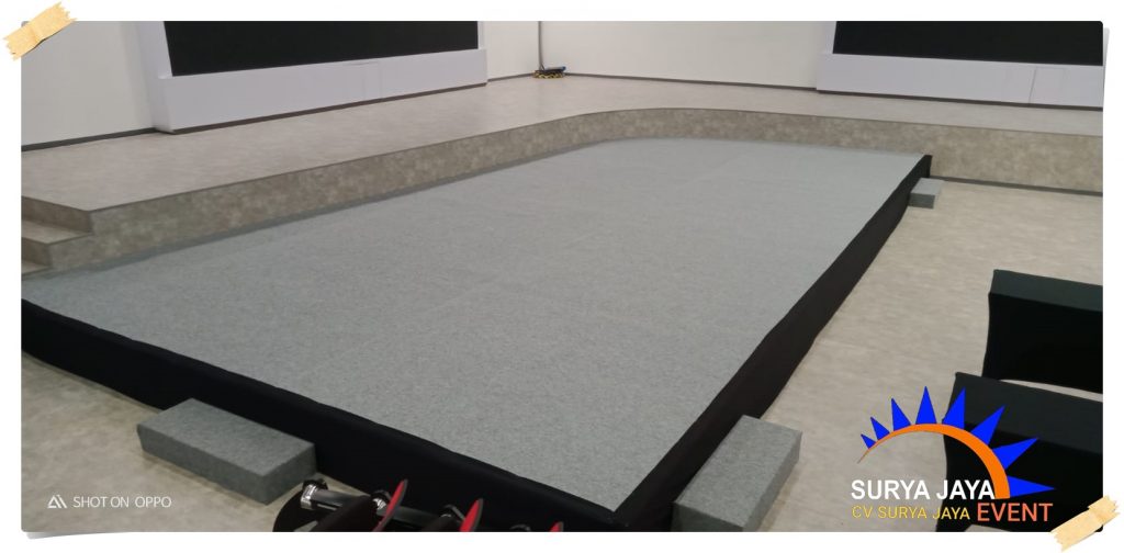 Panggung yang disewakan adalah panggung portable dengan dilengkapi karpet yang kualitasnya bagus sehingga panggung tampil cantik,