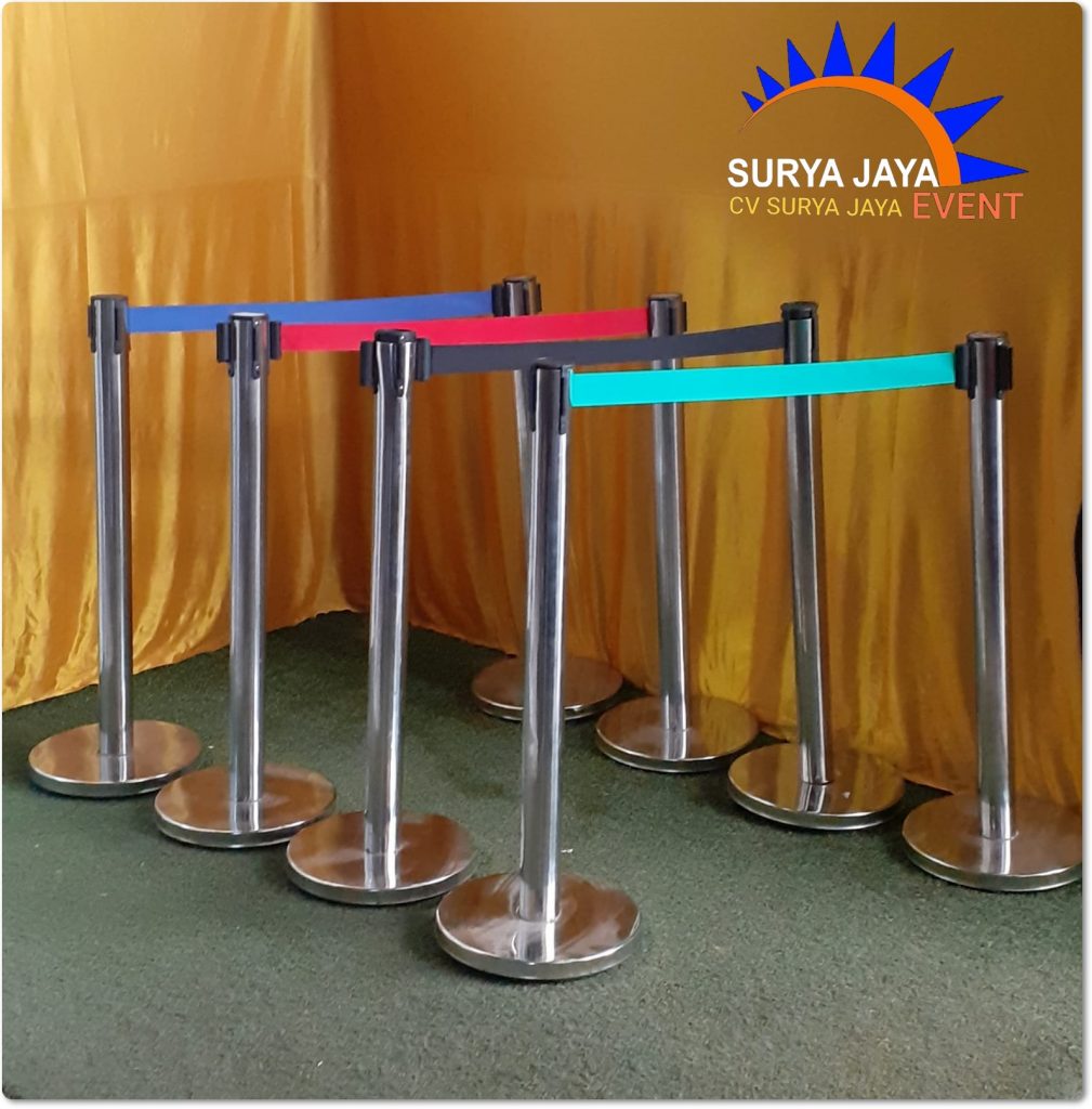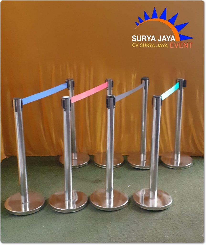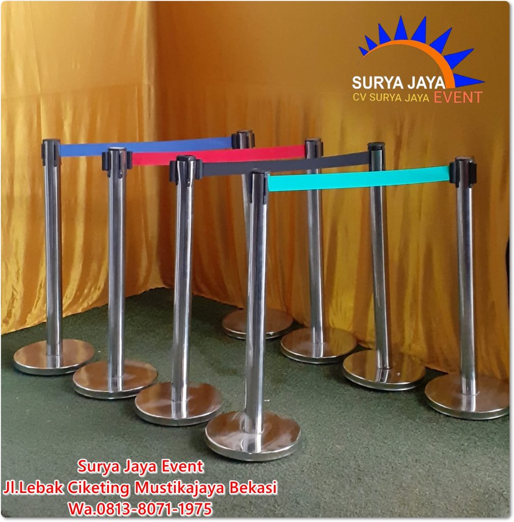 CV.Surya Jaya Event kami melayani jasa Rental Tiang Antrian Bekasi Murah Kualitas Bagus siap bongkar pasang tepat waktu.Kami siap mengantarkan pesanan sampai ke lokasi dan setting di tempat.Kami merentalkan tiang antrian sabuk dengan bermacam pilihan warna.Untuk tiang antrian tinggi nya 90 cm dan tiang nya terbuat dari stainless kualitas bagus tidak karatan sehingga tiang antrian tampil elegant dan mewah.