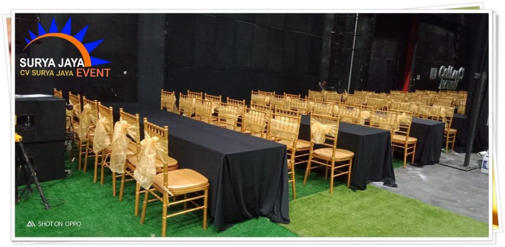 CV.Surya Jaya Event Sewa Kursi Tiffany Jakarta Bebas Ongkir siap kirim ke lokasi acara dan siap setting di tempat.Kursi tiffany yang kami sewa kan ini ada beberapa macam diantaranya : Kursi tiffany putih,kursi tiffany gold,kursi tiffany silver,kursi tiffany acrylic,kursi tiffany hitam.Dijamin kursi tiffany yang kami sewa kan ini kualitasnya bagus,kokoh dan kuat serta nyaman saat diduduki.Kursi tiffany ada alas duduk nya yang sangat empuk jadi sangat nyaman untuk anda duduki.Untuk alas duduk nya warna putih,hitam dan gold.Kursi tiffany cocok untuk bermacam acara seperti acara pernikahan baik untuk kursi pengantin maupun kursi tamu,acara dinner,acara bukber bulan ramadhan dll.Kami juga sediakan meja bulat,meja kotak,meja ibm,meja taman,meja registrasi dll.