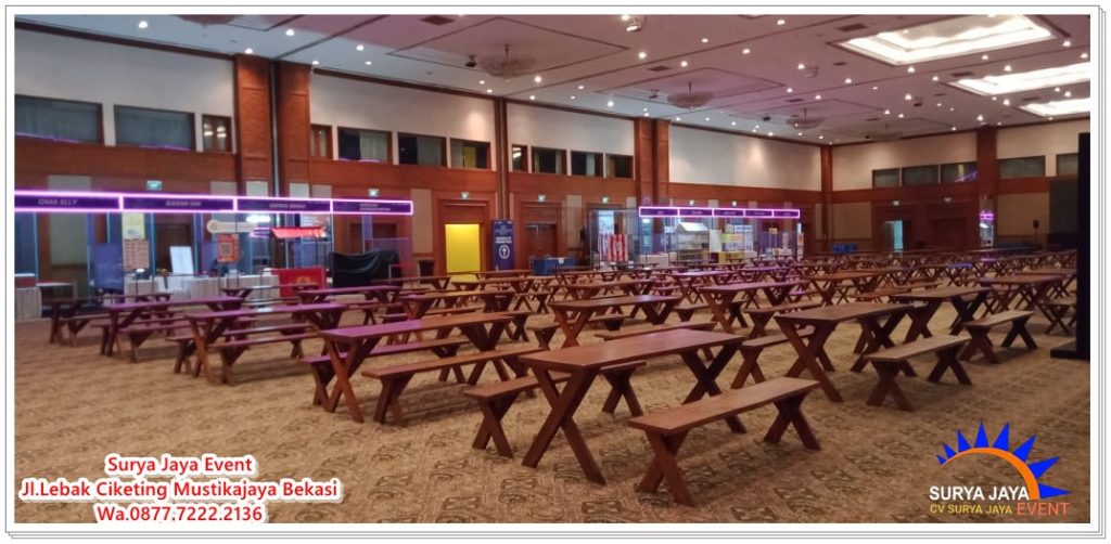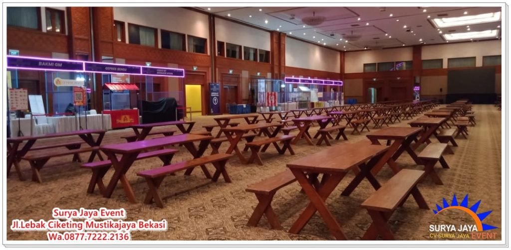 CV.Surya Jaya Event Tempat Sewa Meja Taman Kualitas Terbaik Harga Paling Murah.Kami siap mengantarkan pesanan sampai tujuan dan setting di tempat.Untuk pengiriman bebas ongkir dengan syarat dan ketentuan yang berlaku.Meja taman kami selalu bersih dan juga dirawat dengan sangat baik oleh team perawatan khusus.Meja taman kami terbuat dari kayu yang kualitasnya bagus.Meja taman yang kami sewakan ini model meja taman extra dan untuk bangku taman nya juga bangku taman extra.
