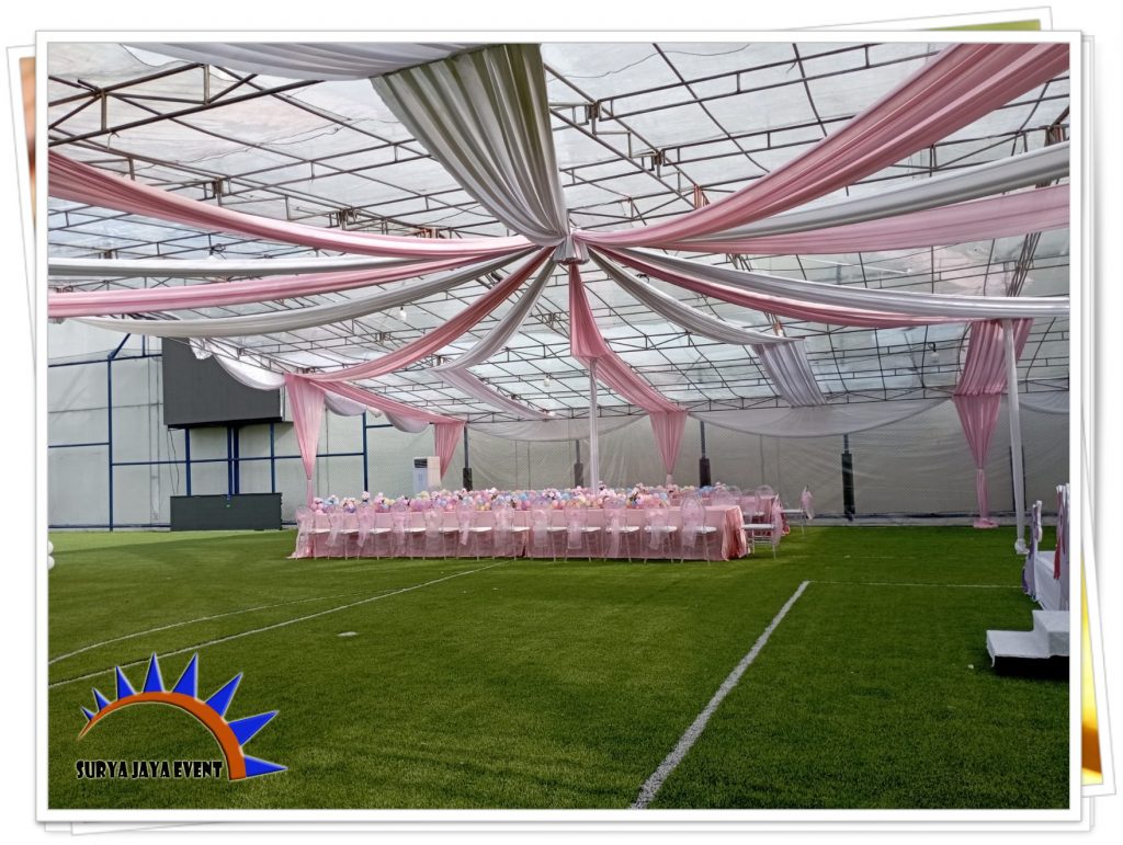 Harga sewa tenda kami permeter sudah termasuk dekorasi tirainya juga. Tirai yang anda pilih juga bisa disesuaikan dengan tema acara.