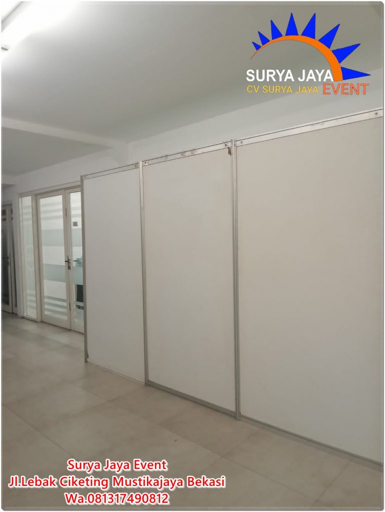 CV.SURYA JAYA EVENT Menyewakan Partisi Terbaik Dan Murah Di Bekasi siap melayani pemesanan wilayah JABODETABEK dan sekitarnya.Untuk pengiriman free dengan syarat dan ketentuan yang berlaku.Partisi terbuat dari multiflek dan almunium dijamin kokoh dan kuat.Untuk tinggi partisi 2,5 meter dan untuk pemasangan dijamin rapih karena pemasangan partisi oleh tenaga ahli dan crew yang berpengalaman.Untuk partisi tersedia bermacam model pilihan diantaranya : Partisi ruangan,partisi booth,partisi panel photo.