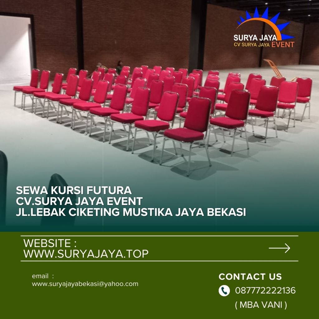 Bagi anda yang sedang membutuhkan kursi futura buat acara,ayo sewa di kami saja yang harganya murah,kualitas bagus,aman,nyaman,kokoh,