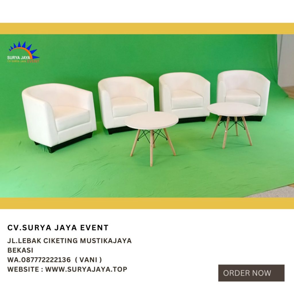 Butuh sofa dan meja untuk perlengkapan acara ??? Ayo sewa di CV SURYA JAYA EVENT yang melayani jasa Sewa Sofa Oval Set Meja Dirmy Di Jakarta Bersih Terawat. Sofa oval sandarannya berbentuk oval oleh karena itu disebut dengan sofa oval. Untuk meja dirmy merupakan produk terbaru . Mejanya warna putih kaki kursinya terbuat dari kayu. Untuk sofa oval dijamin sangat :