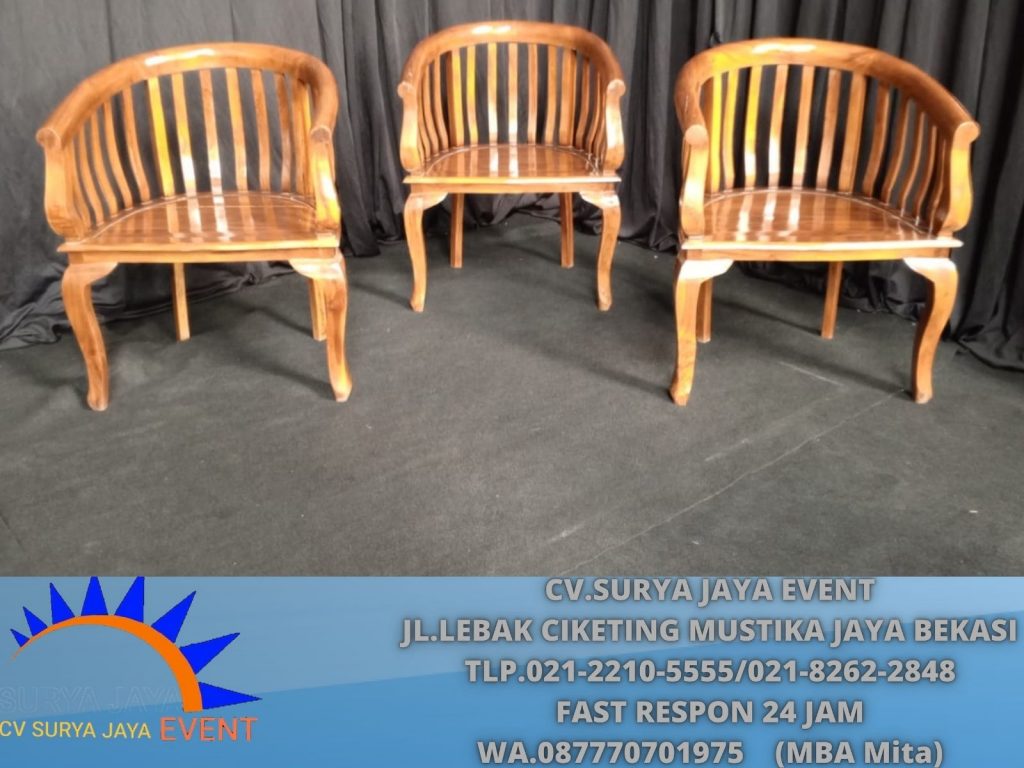 CV SURYA JAYA EVENT Sewa Kursi Betawi Event TMII Sasono Langen Budoyo Jakarta Timur pada tanggal 11 februari 2026. Kursi betawi terbuat dari kayu jati asli yang berkualitas sehingga kokoh dan kuat. Kursi betawi disewa dalam kondisi masih bagus,bersih,terawat dan siap pakai. Jadi bagi anda yang ingin sewa kursi betawi bisa sewa ditempat kami. Untuk pemesanan langsung saja anda telpon atau WA ke nomor 087772222136 ( vani ).