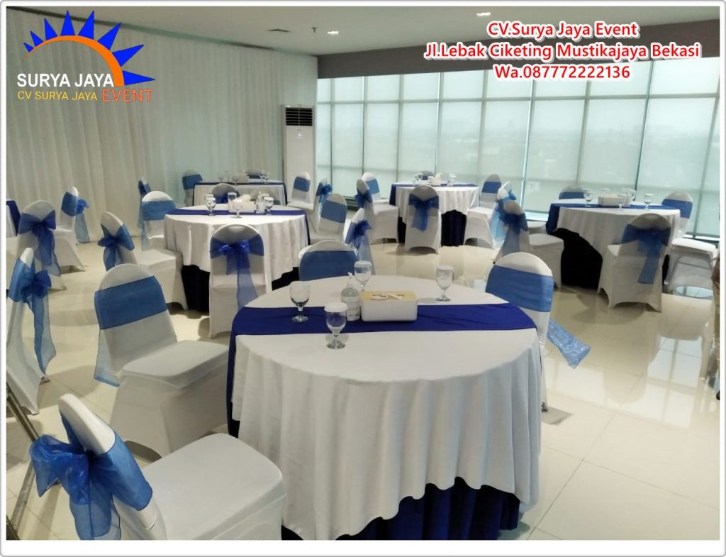CV.Surya Jaya Event melayani Jasa Persewaan Meja Dan Kursi untuk berbagai acara.Meja dan kursi yang kami sewa kan adalah meja bundar dan kursi futura.Meja bundar dan kursi futura biasanya dilengkapi dengan cover yang memiliki kualitas standar hotel sehingga meja bundar dan kursi futura terlihat cantik,mewah juga menarik tentunya acara akan terkesan mewah dan berkelas.Untuk warna cover meja bundar dan kursi futura tersedia banyak pilihan jadi bebas pilih sendiri sesuai selera atau bisa juga sesuai kan dengan tema acara.Untuk ukuran meja bundar kami sediakan tiga ukuran dimulai dari meja bundar ukuran d:120 cm,meja bundar ukuran d:160 cm,meja bundar ukuran d:180 cm.Kami siap menyewakan meja bundar dan kursi futura dengan jumlah besar maupun jumlah kecil kapan saja.