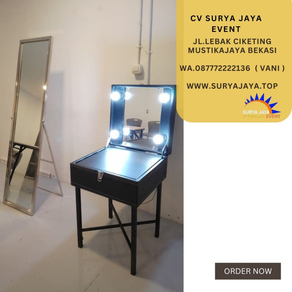 CV.SURYA JAYA EVENT Rental Kaca Rias Portable Dan Full Body Di Jakarta kualitas bagus harga anti mahal. Untuk kaca rias portable dilengkapi lampu dan meja kotak untuk wadah make up. Kaca rias full body dilapisi stainless sehingga tampil elegant dan mewah. Jadi bagi anda yang sedang mencari tempat rental kaca rias portable dan full body ayo sewa di CV.SURYA JAYA EVENT saja. Untuk pemesanan silahkan hubungi kontak kami di 087772222136 ( vani ) atau 081380711975 ( sumi ).