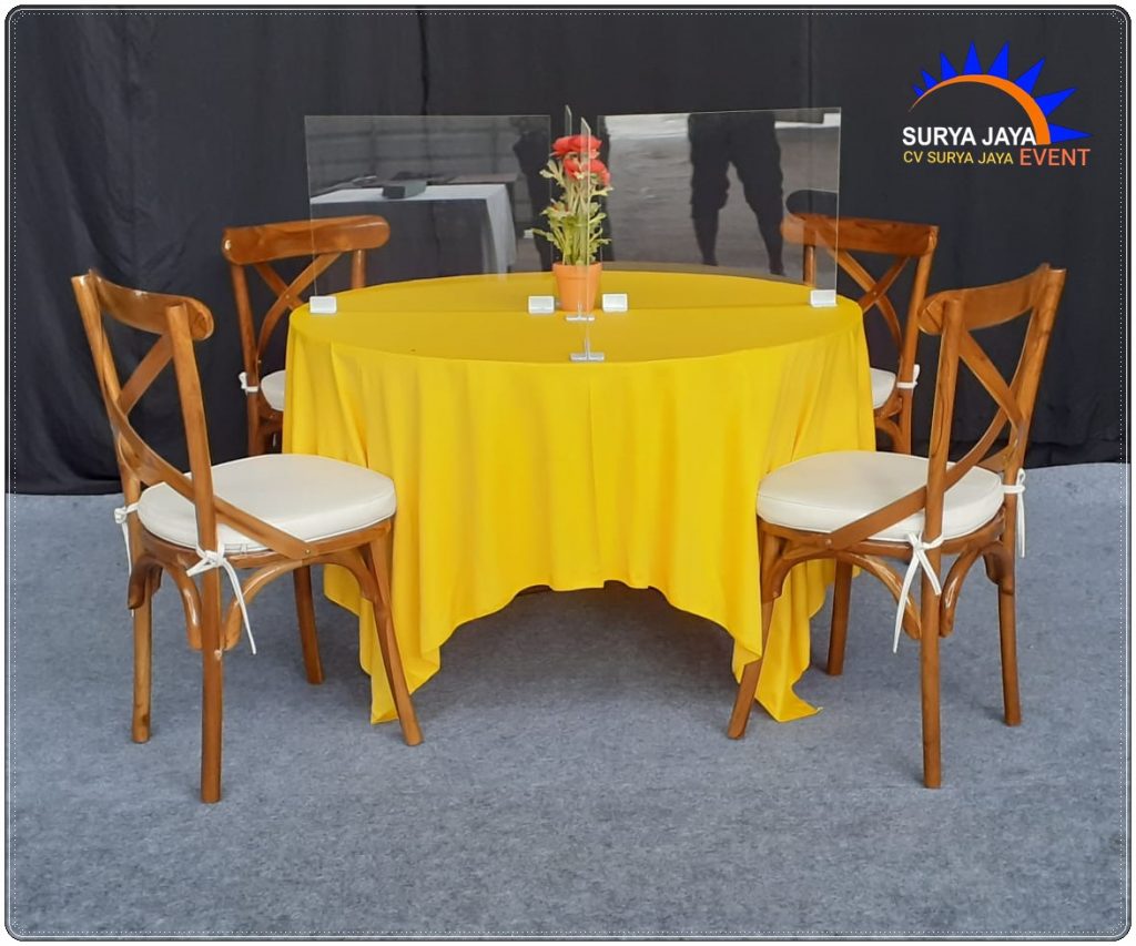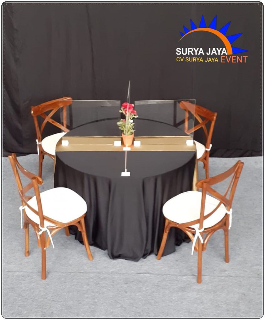 Sewa Meja Bundar Bercover Dan Bersekat Acrylic Di Kota Bekasi