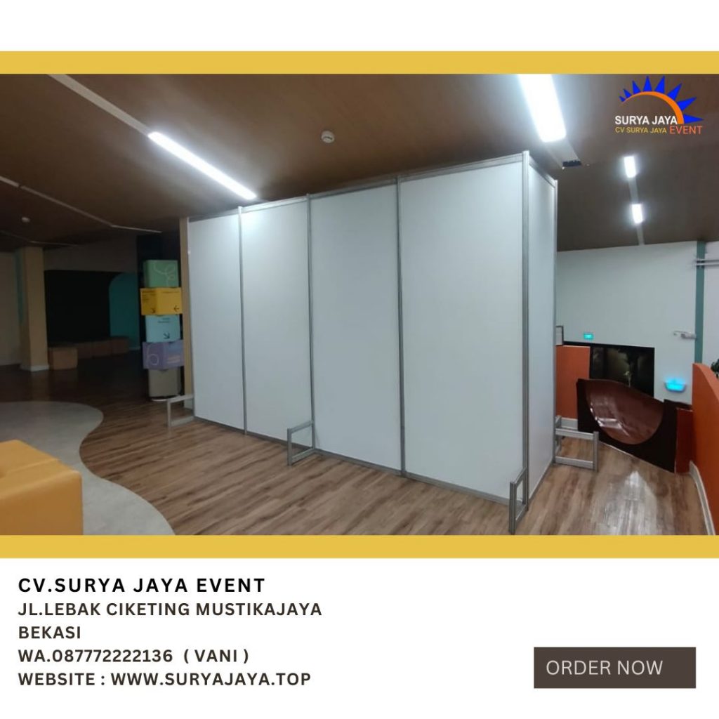 Butuh partisi sekat ruang untuk acara ??? Ingin sewa partisi sekat ruang dengan harga murah namun kualitas bagus ??? Ayo sewa di CV SURYA JAYA EVENT kami saja yang merupakan Pusat Sewa Partisi Sekat Ruang Terlengkap Jakarta. Partisi sekat ruang yang disewakan warna hitam dan ada juga lho warna putih. Ukuran partisi sekat bisa disesuaikan dengan permintaan customer.