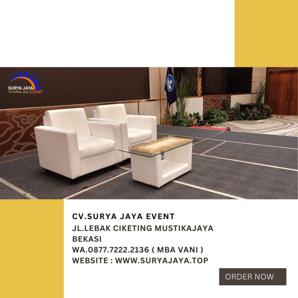 CV SURYA JAYA EVENT Pusat Sewa Sofa Dan Meja VIP Untuk Event Area Jakarta siap melayani pemesanan untuk event area jakarta,bogor,depok,tangerang,bekasi dan sekitarnya. Bagi anda yang sedang mencari tempat penyewaan sofa dan meja vip ayo sewa di CV SURYA JAYA EVENT kami saja yang terjamin kualitasnya bagus dan harganya juga anti mahal. Untuk pemesanan bisa telpon atau chat WA ke 087772222136 ( vani ). Tentunya operator kami akan merespon cepat dan memberikan pelayanan terbaik. Selain itu kami akan mengirim pesanan anda ke lokasi dan langsung setting.
